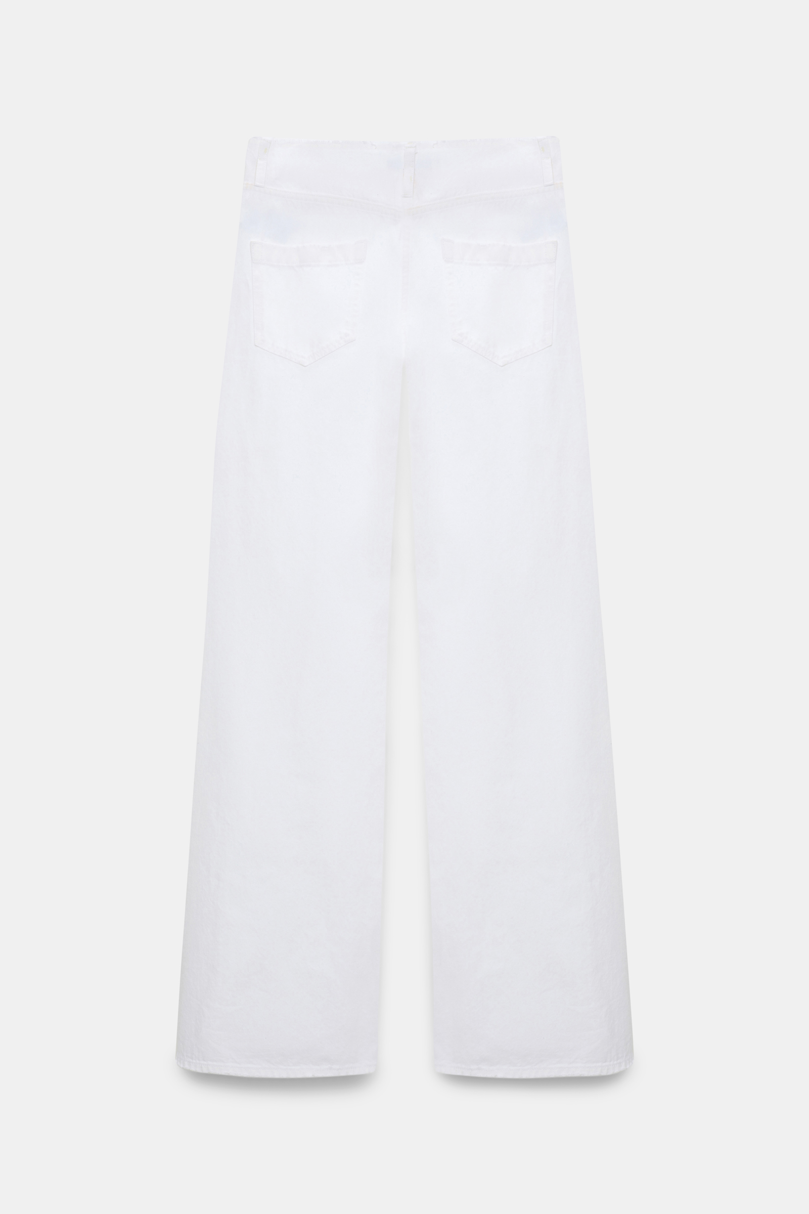 Die Jeans überzeugt durch ein weites Bein und einen klassischen 5-Pocket-Style. Ein Logopatch aus geprägtem Leder hinten und ein schmaler, ausgefranster Bund verleihen der Hose besondere Details.
