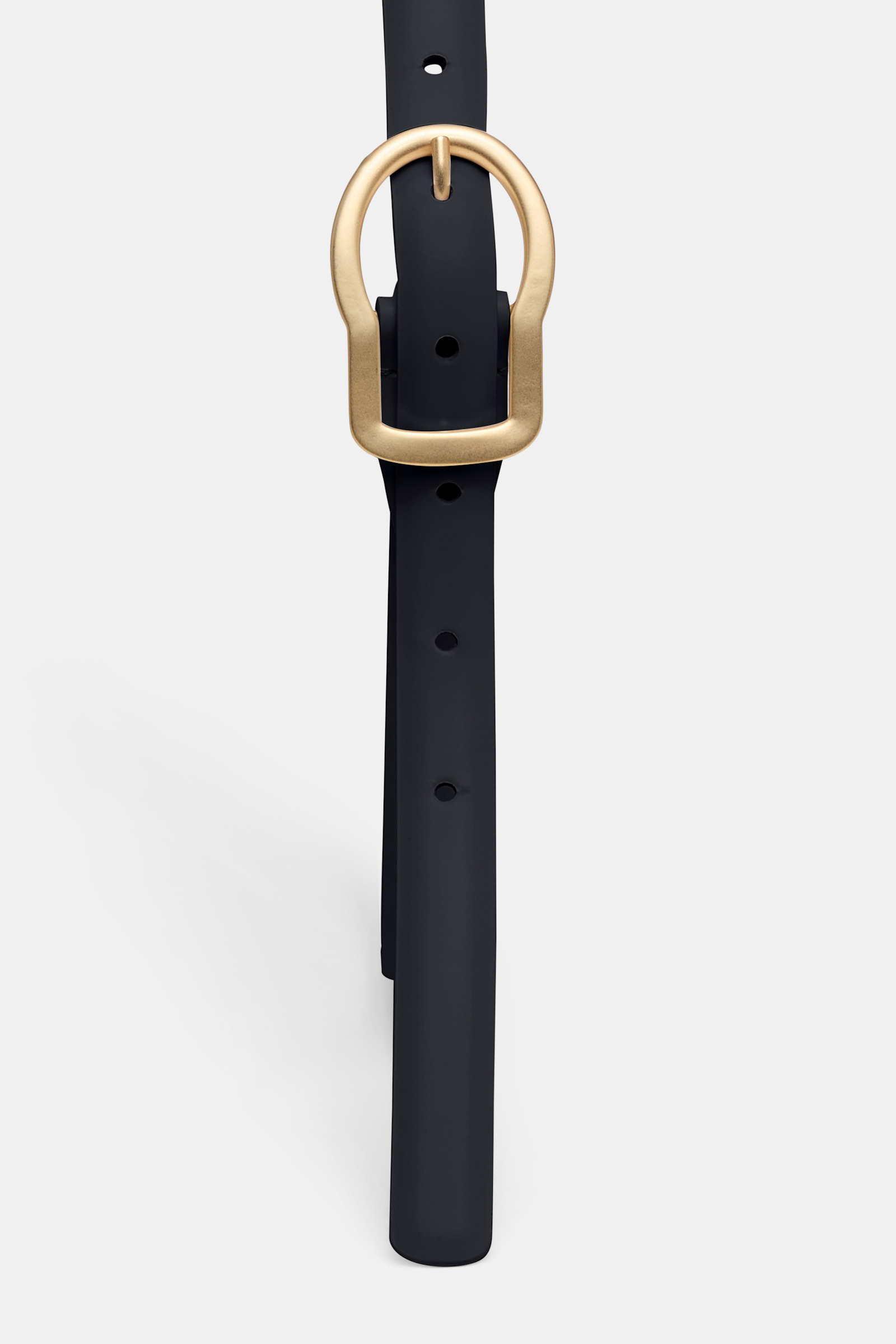 Der Gürtel ist aus softem Kalbsleder gefertigt und hat eine leicht shiny Optik. Die schmale Silhouette wird durch eine goldene Signature-Schließe ausgezeichnet.