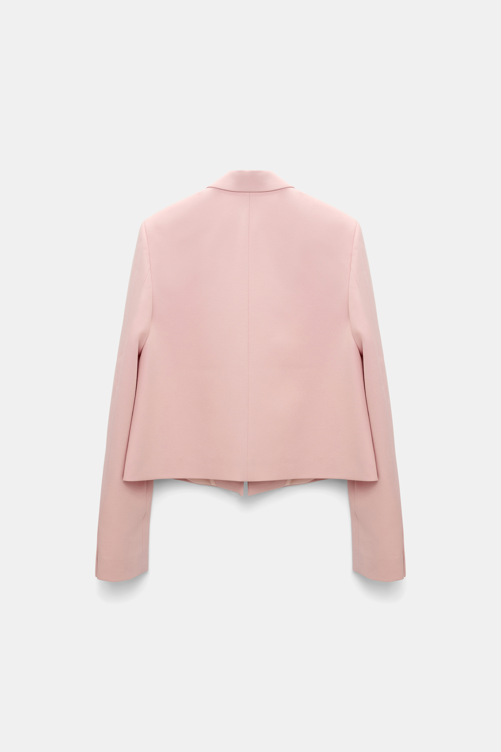 Der cropped Blazer in zartem Rose vereint eine elegante Silhouette mit modernem Touch: Ein klassischer Reverskragen und Pattentaschen verleihen der Jacke eine zeitlose Note. Der boxy Shape und die Ärmelschlitze sorgen für ein lässiges Finish.