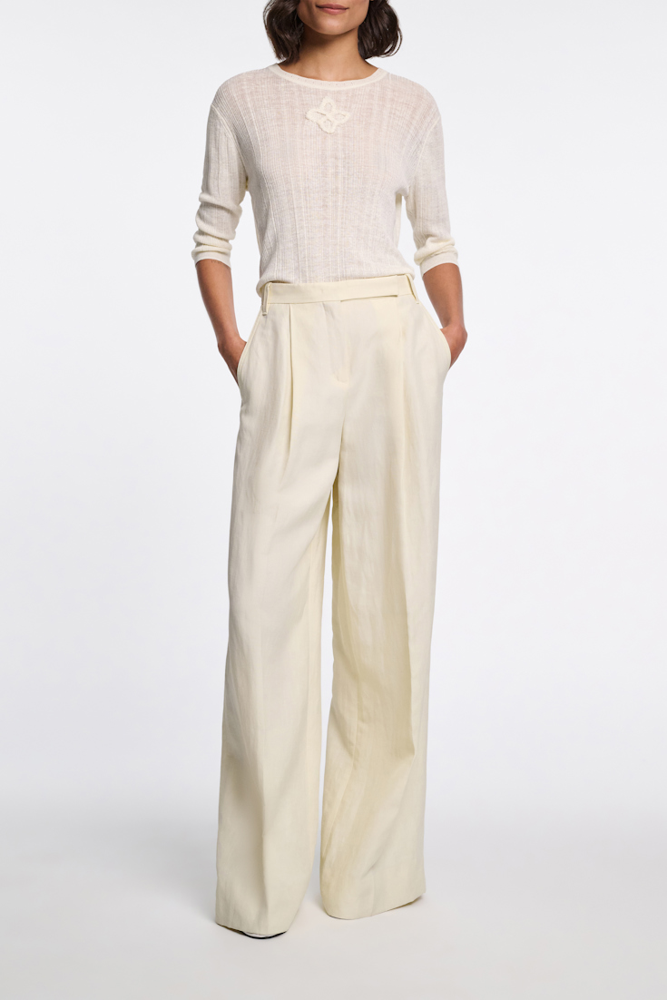 Der Pullover ist aus einem leichten Leinenmix gefertigt. Die tonale D-Rose-Stickerei mit Relief auf der Vorderseite zeichnet das Summer Essential aus. Der Pullover hat einen abgerundeten Saum.
