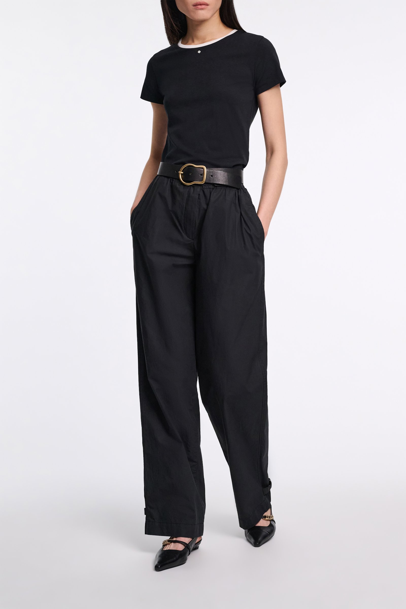 Rundhalsshirt mit kontrastierendem Bündchen und D-Rose Detail